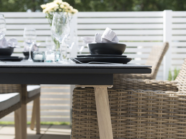 Sofa in nature colored wicker and an aluminum frame. Light beige cushion are included. Combine with Fyrsnäs armchair and dining table and you have both a nice and stylish place to sit in.