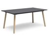 Table with nature colored aluminum frame and a table top in grey/black glass 90x160 cm.