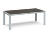 A sleek and maintenance-free lounge table made of aluminum with a warm gray mottled ceramic glass tabletop, 5mm thick.