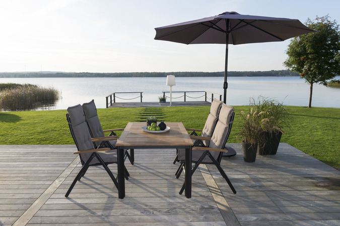 Nydala is one of our most popular aluminium dining furniture. Made of aluminium frame with textilene seat and back. Lavish in choice of materials and comfort. The chair is adjustable and foldable for good comfort and easy storage. Available in several colours and designs as well as with several options.