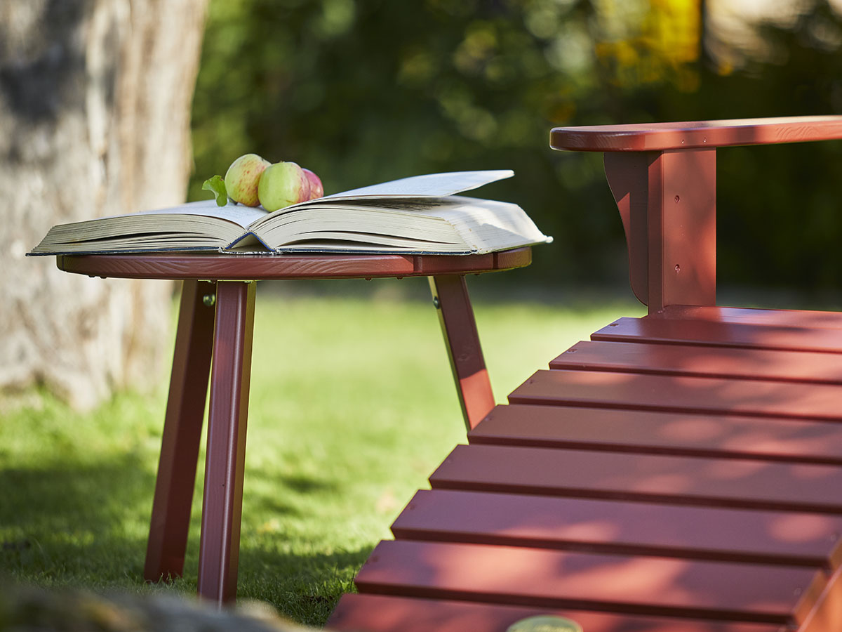 Table for Tennessee deck chair in red FSC-certified pine. Practical use for the drink on a hot summer day or for a warm cup of tea when it starts to cool down.