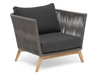 A stylish chair made of teak and grey olefine strips. Grey Sunproof® cushion in olefine included. Removable cover, hand wash.