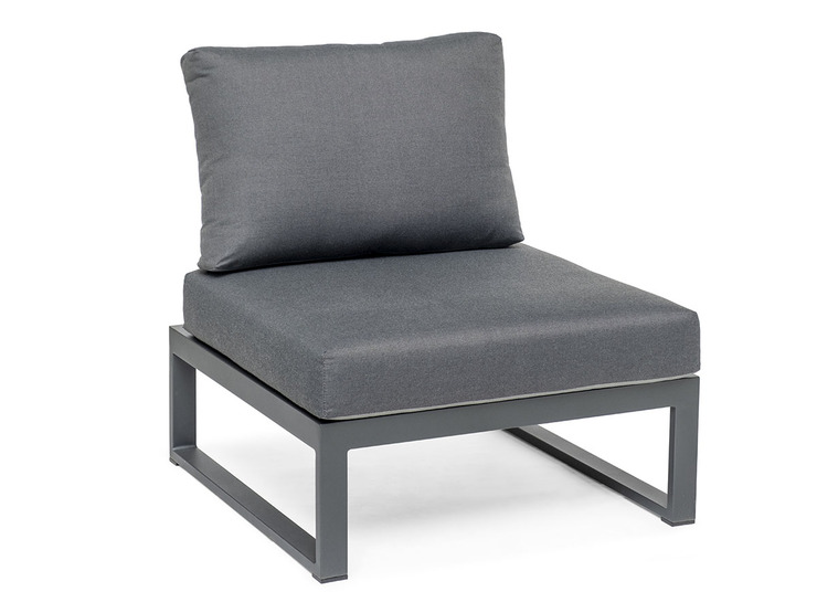 A comfortable and modular center section that can be combined with various elements in Oxelunda serie. Made of aluminum. Color: Charcoal. Light gray cushion in olefin with quickdry foam in the seat. Quickdry is an unique foam with fast drying ability and high comfort. Quickdry is breathable, has an open cell structure and it's weather resistant. Therefore, it works optimally for outdoor furniture.