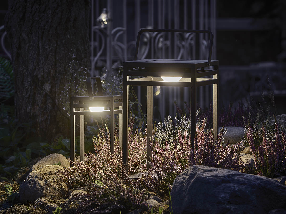 Stylish and environmentally friendly lighting with LED lamp and solar cells in Scandinavian design. The lantern is charged via solar cell or USB. Dimmable to 30, 50 or 100%. Made of aluminum. Color: charcoal.