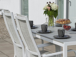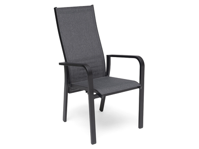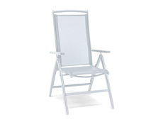 A stylish and easy-care furniture in aluminum and textilene. The chair is stackable and adjustable in different positions.