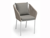 A neat, modern and sophisticated chair. Made of white aluminum with braided beige ropes in olefin. Cushions with olefin fabric.
