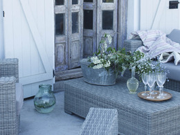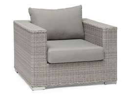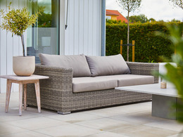 En loungemöbel med generöst utrymme och klassiskt stram design. Med sina raka linjer ger möbeln ett elegant intryck. Komfort, gott om plats och praktfullt vacker - vad mer kan man begära? Möblerna är gjord i flätad 1-trådig ljusgrå Quató-konstrotting. Sunproof™ dyna ingår!