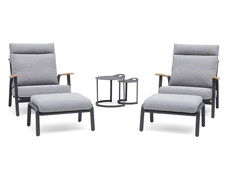 En komfortabel och vackert designad möbelserie med flera olika element som kan kombineras. Serien är tillverkad av aluminium i färgnyansen charcoal. Trädetaljer i FSC-certifierad teak. Grå dynor i olefin med quickdry foam i sitsen. Quickdry är ett unikt fyllnadsmaterial med snabb upptorkningsförmåga och god sittkomfort. Det är andningsbart, har öppen cellstruktur och är väderbeständigt och fungerar därför optimalt för utomhusmöbler.