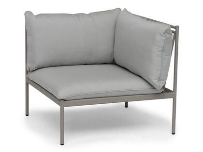 Modern stilren underhållsfri modulsoffa. Mjuka runda profiler möter stram design med lekfull modularitet. Kombineras precis så som du önskar med hörndelar, mittdelar, divaner och bord. Tillverkad i aluminium med dynor i fjädergrå olefin. Avtagbar klädsel som kan tvättas i handtvätt 30 grader. Diskreta beslag och sammansättningar. Klämma medföljer för låsning av moduler.