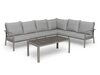 Stilrent och underhållsfritt loungebord tillverkad i aluminium med bordsskiva i varmgrå melerad keramisk glas, 5 mm tjock.