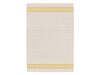 Mönstrad utomhusmatta i modernt uttryck med en mönsterdetalj i kontrasterade gul färg. Väven har en slät struktur med ett tåligt avskalat uttryck. Tillverkad av 100% extra hållbart polypropylengarn. Garnet är UV-beständigt, tål vatten, fäller inte, och är fläckavvisande. Mattan kan därför utan problem placeras utomhus, i uterum eller inomhus. Långsidorna är avslutade med tålig langett i matchande färg och kortsidorna är limmade och nedvikta för att ge en slimmad siluett. Lätt att rengöra, dammsug eller spola av med ljummet vatten och låt torka. Fläckar avlägsnas med en svamp, lite ljummet vatten och diskmedel. Finns i flera olika storlekar.