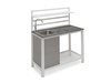 Vem vill inte laga mat under bar himmel? Sommarens måste och festens självklara medelpunkt är uteköket! Komplett arbetsbänk i vit aluminium, vit hylla samt gråmelerad bänkskiva.