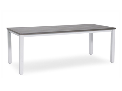 Bordet, som mäter 90x200 cm, har en bordsskiva av Gaumo samt benställning av aluminium.