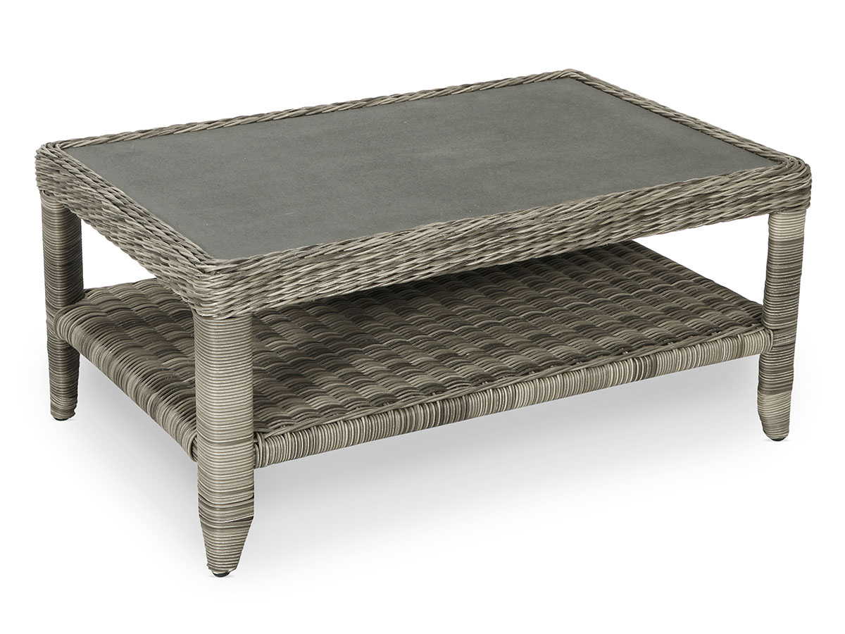 Vad gäller Dallas, är konstrottingtrådens profil cirkelrund. Det ger en omisskännlig karaktär åt möbeln och konstruktionen tillhör de mest exklusiva på marknaden. Konstrotting av Quató-fiber flätad kring en stomme av aluminium borgar ytterligare för hög kvalitet. Dallasbordet har en skiva av härdat glas, som Spraystone-behandlats för att se ut och kännas som sten. Snyggt och praktiskt!
