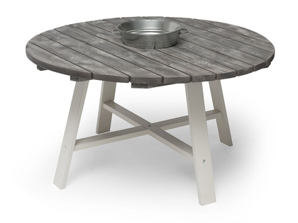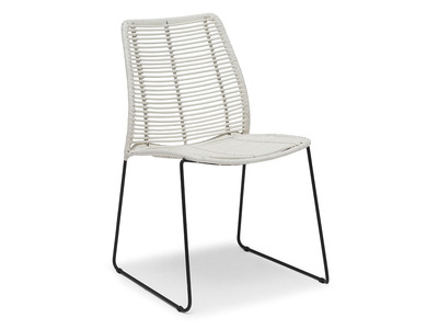 En modern och retro stol för inomhusmiljö. Stolen är gjord i antikvit naturrotting och svart metallstomme, och är även stapelbar.