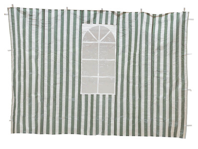 Grön/vit randiga allroundväggar i PE. Säljes i 2-pack, en vägg med fönster och en utan fönster. Kardborreband för upphängning.
