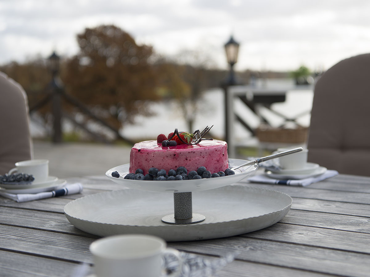 Shabby Chic-bord. Grålaserad borstad bordsskiva med grå ben tillverkad av FSC®-certifierad kärnfuru från Norrland.