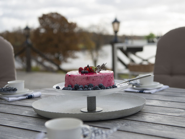 Shabby Chic-bord. Grålaserad borstad bordsskiva med vita ben tillverkad av FSC®-certifierad kärnfuru från Norrland.