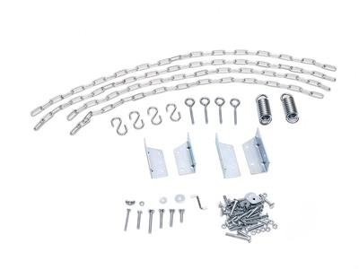 Reservdelspaket till Dalom- och Slöinge hammock. Innehåller 4 st S-krokar, 4 st öglor, 2 st långa kedjor, 2 st korta kedjor, 2 st hammockfjäder, 4 vinkelbeslag samt skruvpåse.