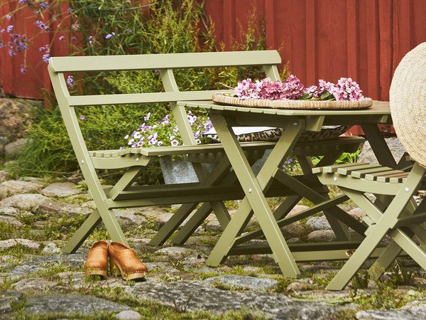 Vi erbjuder klassiska cafégrupper i trä med en pittoresk estetik i skandinavisk och småländsk anda. I sortimentet finns förutom stolar och bord också utesoffor i matchande utförande. Varmt välkommen att botanisera bland våra klappstolar och bord, där något säkerligen faller dig i smaken. Kombinera beroende av dina behov och skapa en oas till just din trädgård.