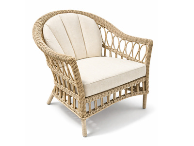 Fjäderö korgfåtölj förenar tidlös elegans med modern komfort. Den karaktärsfulla designen i gråbeige konstrotting och den mjukt solfjäderformade cremefärgade dynan skapar en inbjudande plats för avkoppling och samtal. Fåtöljen är lika vacker i uterummet eller på terrassen som i vardagsrummet. En möbel som drar blickarna till sig och ger rummet en sofistikerad känsla.