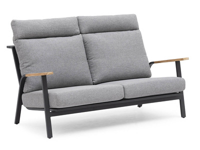En funktionell och vackert designad 2-sits soffa. Tillverkad av aluminium med trädetaljer i FSC®-certifierad teak. Färg: charcoal. Grå dynor och nackkudde i olefin med quickdry foam i sitsen. Quickdry är ett unikt fyllnadsmaterial med snabb upptorkningsförmåga och god sittkomfort. Det är andningsbart, har öppen cellstruktur och är väderbeständigt och fungerar därför optimalt för utomhusmöbler.