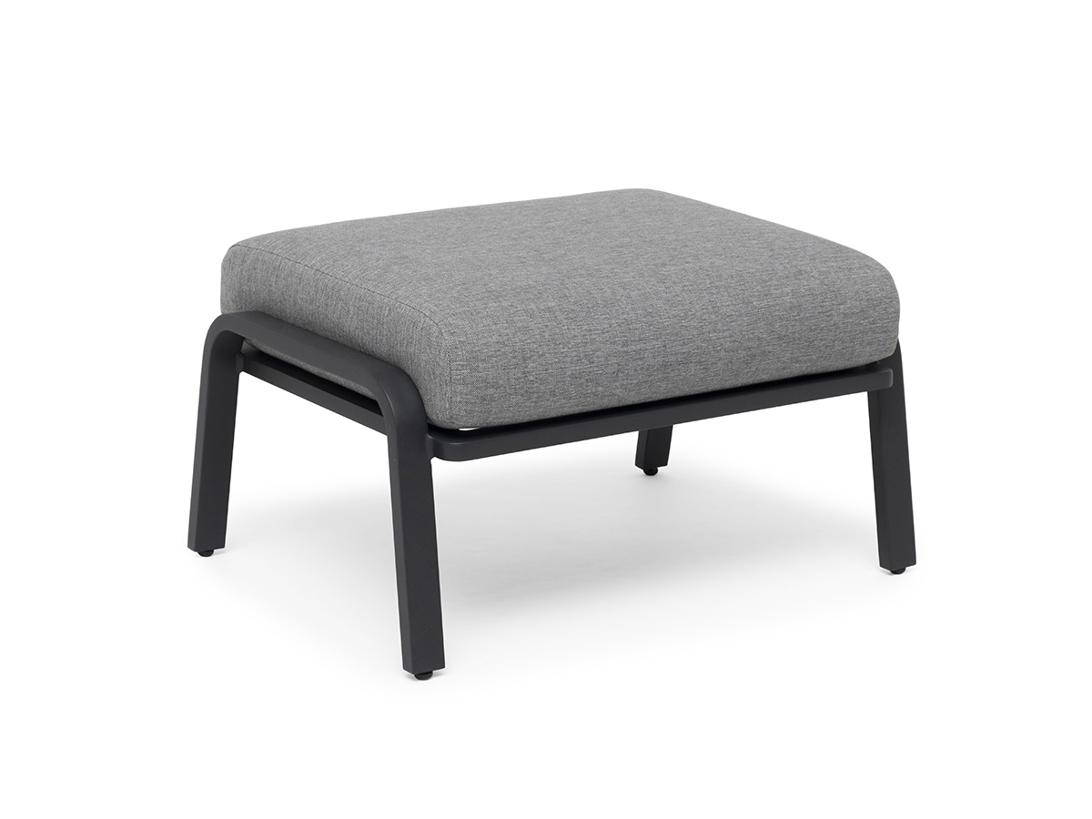 En funktionell och vackert designad fotpall till Kungshult fåtölj. Tillverkad av aluminium. Färg: charcoal. Grå dyna i olefin med quickdry foam i sitsen. Quickdry är ett unikt fyllnadsmaterial med snabb upptorkningsförmåga och god sittkomfort. Det är andningsbart, har öppen cellstruktur och är väderbeständigt och fungerar därför optimalt för utomhusmöbler.