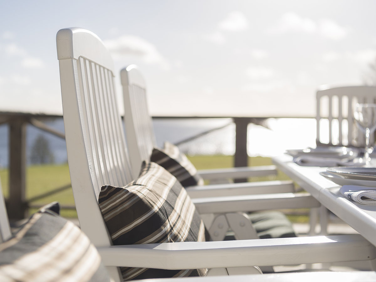 Amelia är egentligen en hel serie möbler där det förrutom fåtöljer och klappstolar även ingår däckstolar och pallar. Bordet på bilden har dubbla iläggsskivor av butterfly-typ, som enkelt fälls ner under bordsskivan då de inte används. Med båda skivorna uppe blir bordet hela 332 cm långt! Amelia är av FSC®-märkt kärnfuru.