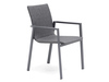 En avskalad och stilren stapelstol i Borgdala serien. Tillverkad av aluminium med sits- och rygg i grå stoppad textilene, kräver ingen extra dyna. Textilene är ett lättskött och snabbtorkande material. Färg: Charcoal