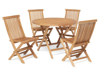 Klassisk möbel i obehandlad teak. Bord och stol går enkelt att fälla för smidig förvaring. Tillverkad i teak av hög kvalitet, FLEGT-certifierad.
