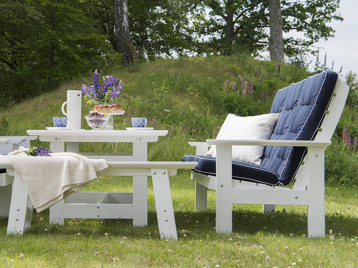 A beautiful white sofa in modern updated classic cut. Made from climate-smart FSC®-certified pine. Good comfort is a promise!