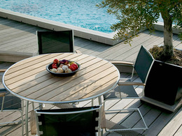 A stylish and classic table in FSC-certified teak. The frame is made of high-quality steel. Designed by Staffan Hultgren.