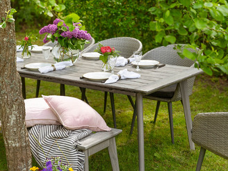 Shabby chic similar table in the Valletta range. A grey stained table top and frame in grey stained pine. Suits very well with Valletta armchair. A new stylish group that with its round lines gives a tasteful and modern impression.
