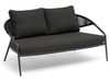 A comfortable and modern furniture in a neat design. Made of anthracite gray powder-coated aluminum braided with acrylic rope. Cushion in olefine with quick dry foam in the seat. Quick dry is a unique filling material with fast drying ability and excellent comfort. It is breathable, has an open cell structure and is weather resistant and therefore works optimally for outdoor furniture.