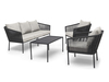 A neat, modern and sophisticated sofa group for the small patio. Made of white aluminum with braided beige ropes in olefin. Cushions with olefin fabric. Dimensions: Sofa 180x74x74 cm, Armchair 72x74x74 cm, Table 97x50x45 cm.
