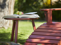 Table for Tennessee deck chair in grey FSC-certified pine. Practical use for the drink on a hot summer day or for a warm cup of tea when it starts to cool down.