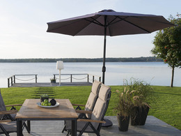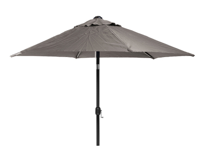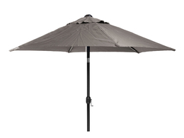 Black aluminum frame and polyester fabric. This parasol is equipped with crank and tilt. The crank makes it easy to fold up and down. A tilt ensures that you can angle the parasol, practically late at night or early in the morning when the sun is low. Parasol 300 is 250 cm high and the pole is Ø48 mm.