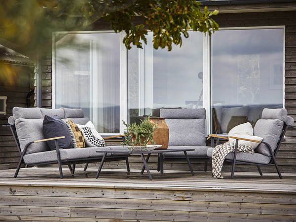 A modern and high-class hammock with stylish lines. The hammock has practical relief surfaces on the sides for, for example, books or glass. Made of aluminum with wooden details in FSC-certified teak. Color: charcoal. Roof in sunproof material. Gray cushions and neck pillow in olefin with quickdry foam in the seat. Quickdry is an unique foam with fast drying ability and high comfort. Quickdry is breathable, has an open cell structure and it's weather resistant. Therefore, it works optimally for outdoor furniture.