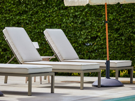 Enjoy sunny days in a Jet Set sun lounger. The sun lounger is made of beige aluminum and braided UV fabric stripes. A cushion in beige polyester is also included!